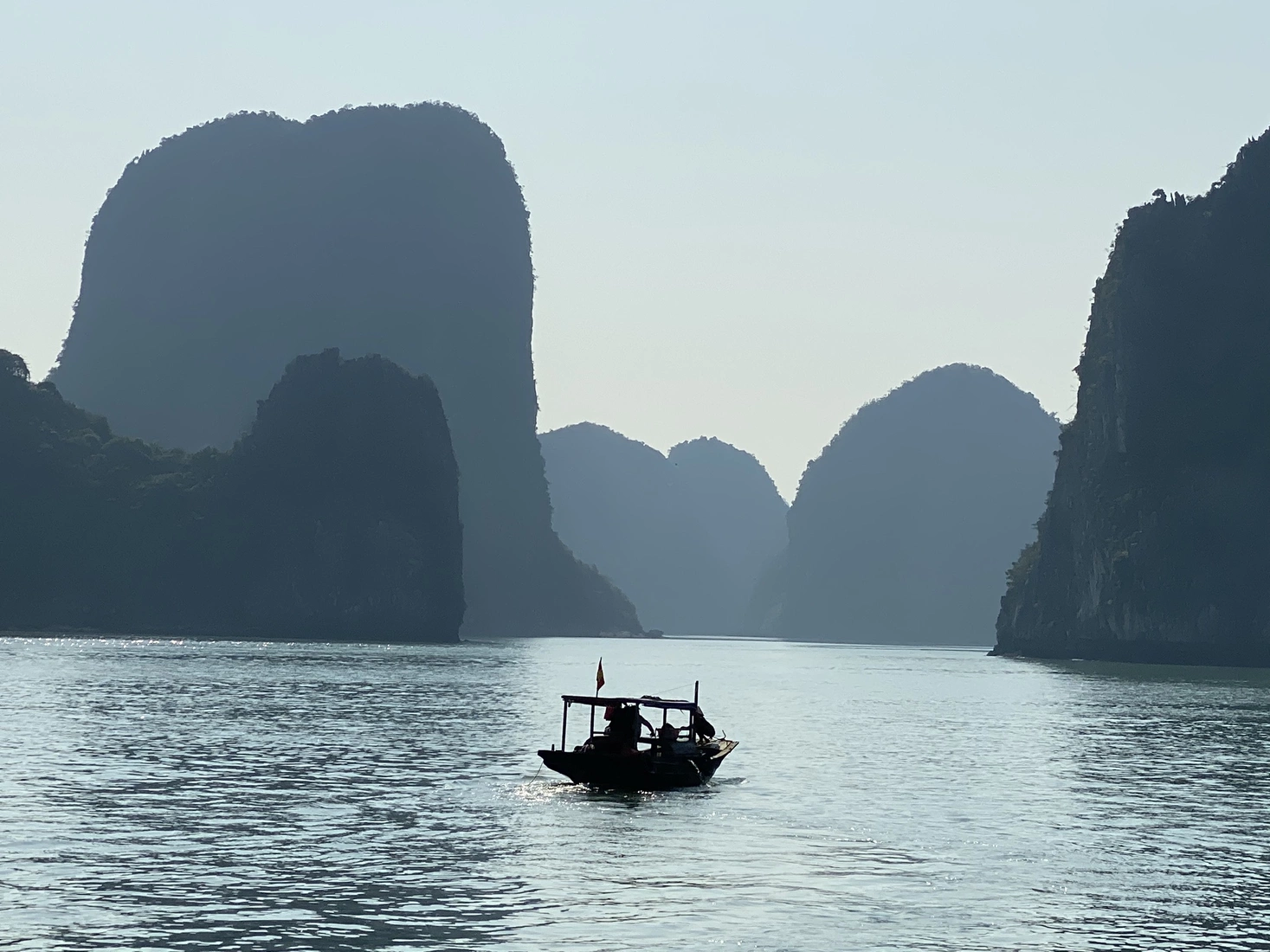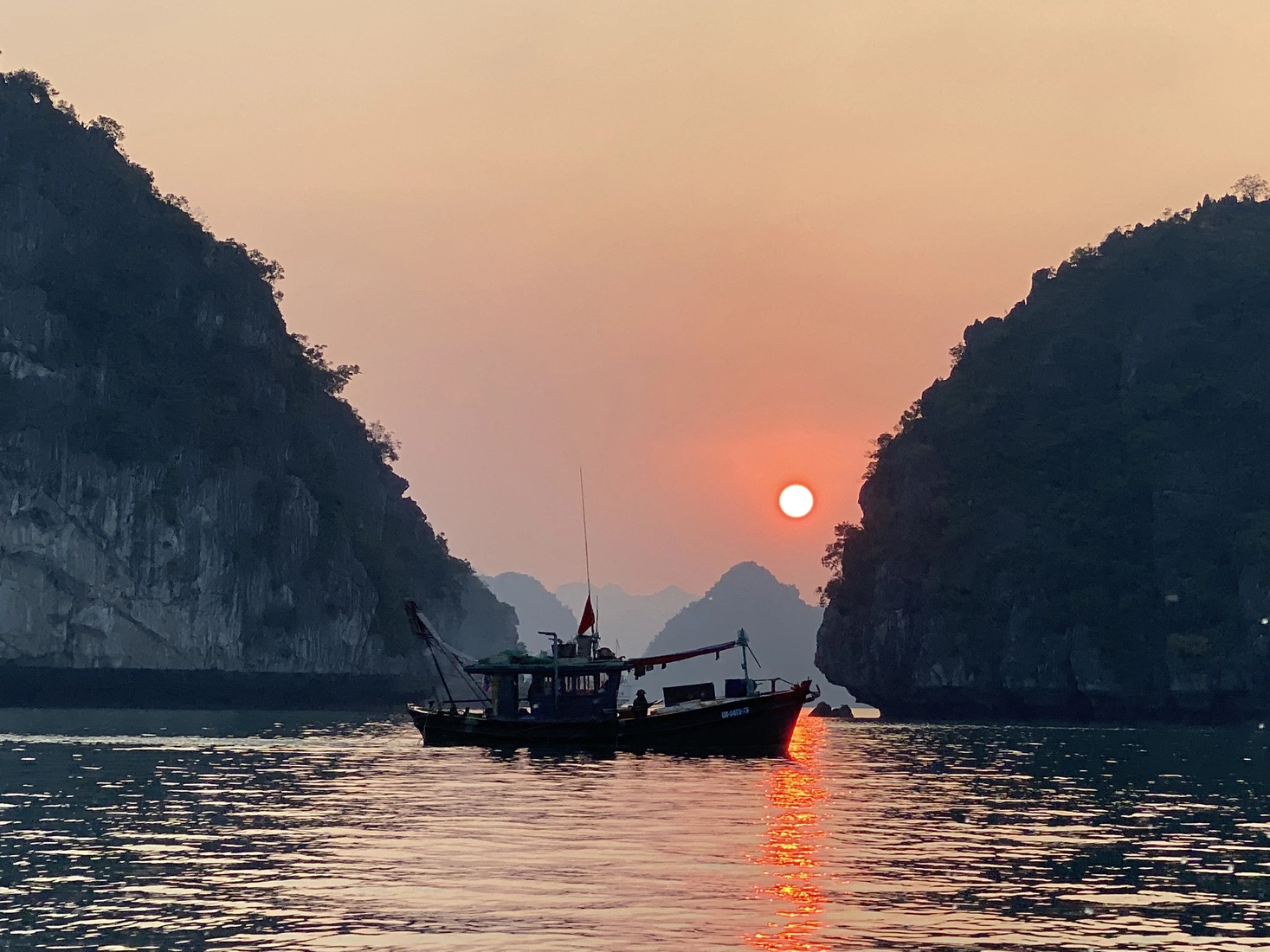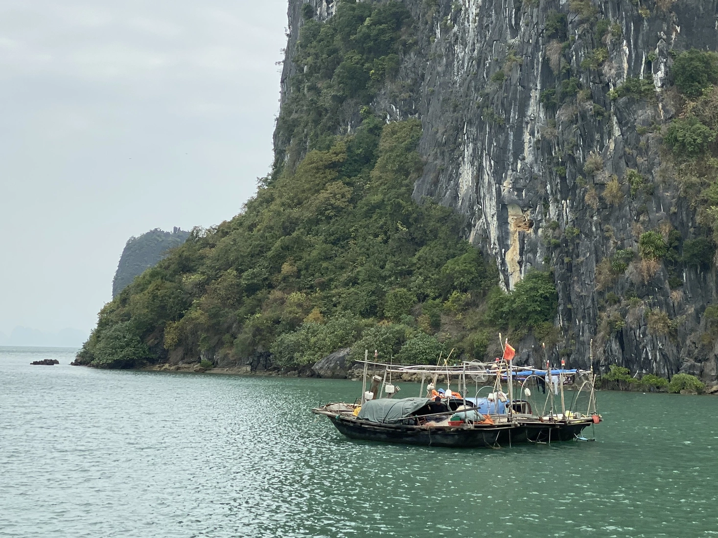 Hạ Long Bay, located on Việt-Nam’s northeastern seacoast in the Gulf of Tonkin, is about 105 miles from Hà Nội and an UNESCO recognized World Heritage site for its magical landscape of rocky formations and crystal blue waters and geomorphology. Its name means “descending dragon” and the bay has over 2,000 limestone islands and islets of various sizes with interesting cave formations and grottoes. While the bay is mostly uninhabited, it is home to four traditional floating villages that date back to the early 19th century. These communities comprised of 400 households, approximately 1,700 people, who live on boats and floating wooden houses. Their main livelihood is fishing and aquaculture. These floating villages and their distinctive traditional lifestyle provide another unique facet of Vietnamese identity. In recent years, the Vietnamese government has begun to relocate the inhabitants of the floating villages into settlements on land to preserve Hạ Long Bay’s natural landscape.